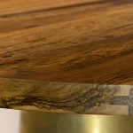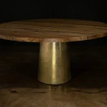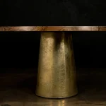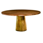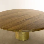 The Benino Round Pedestal Table by Costantini Design features a cast bronze base that is only partially polished in order to highlight the imperfections that evidence the burnt earth that once surrounded it during the casting process. Its top, by contrast, is finished smooth and in your choice of material and color. Shown in Argentine Rosewood with straight edge. Available also in stone or lacquered top, and in any size or finish.