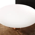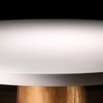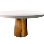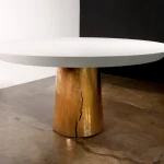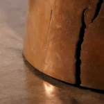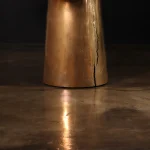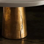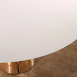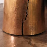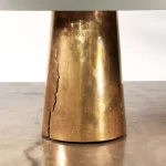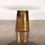 The Beninx Round Pedestal Table by Costantini Design features a cast bronze base that is only partially polished in order to highlight the imperfections that evidence the burnt earth that once surrounded it during the casting process. Its top, by contrast, is finished smooth and in your choice of material and color. This is one of two pieces that feature a naturally occurring “crack” from the casting process.