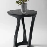 Created by Lithuanian designer Donatas Zukauskas, this sculptural side table blends stark elegance with raw texture. Its bold silhouette merges archaism and modernity, bridging functional design with sculptural form. Inspired by brutalism and wabi-sabi aesthetics, the piece reveals deliberate imperfections and tactile surfaces that invite touch and evoke natural erosion.