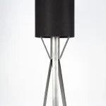 An alligator jacquard lampshade introduces texture and depth, creating a refined contrast with the clean aluminum frame. The patterned surface brings warmth and tactility, enriching the lamp’s simple geometry. By working with one uninterrupted tube, the design turns a structural constraint into an elegant sculptural gesture, uniting precision, texture, and material honesty. Created in collabortion with Max Strick.