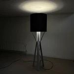 This lamp is formed from a single 2-meter aluminum tube, cut and bent into a seamless, one-piece structure. Its continuous line highlights clarity and restraint, allowing the form to emerge directly from the behavior of the material. Subtle variations along each bend reveal the hand-crafted process, adding softness to the lamp’s otherwise minimal, architectural presence.
