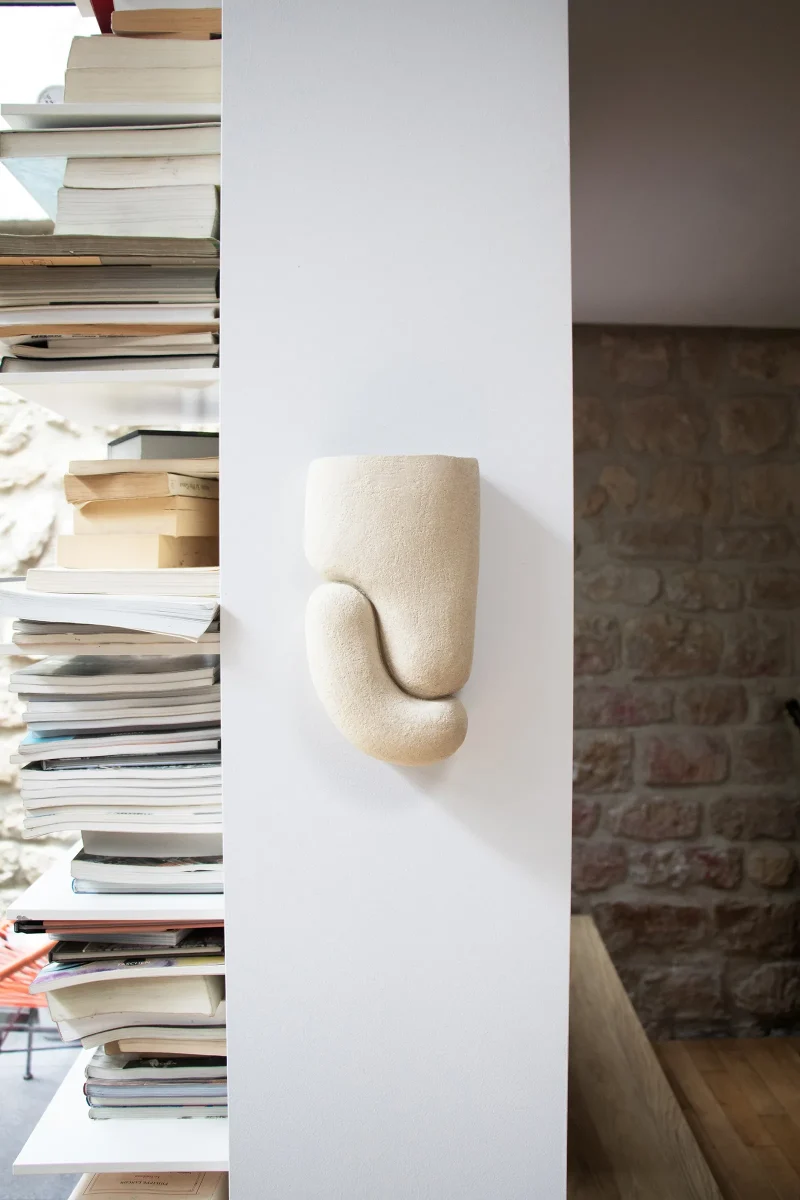 The Bird wall lamp by Lahana Alice is handmade in the studio’s workshops. Bird is a wall lamp in chamotte sandstone. Its two elements merge through their curves and offer the eye a delicate and soothing shape.