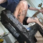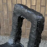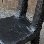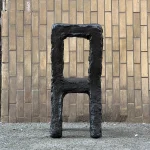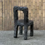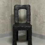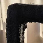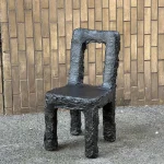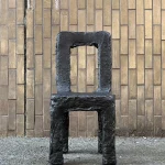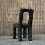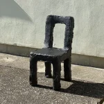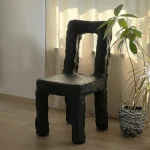 Upcycled, black, fully functional, handmade chair by David Čáp, with a square shape made of shredded paper. Despite the unconventional material, it has sufficient load capacity (100 kg) and is easy to wash.
