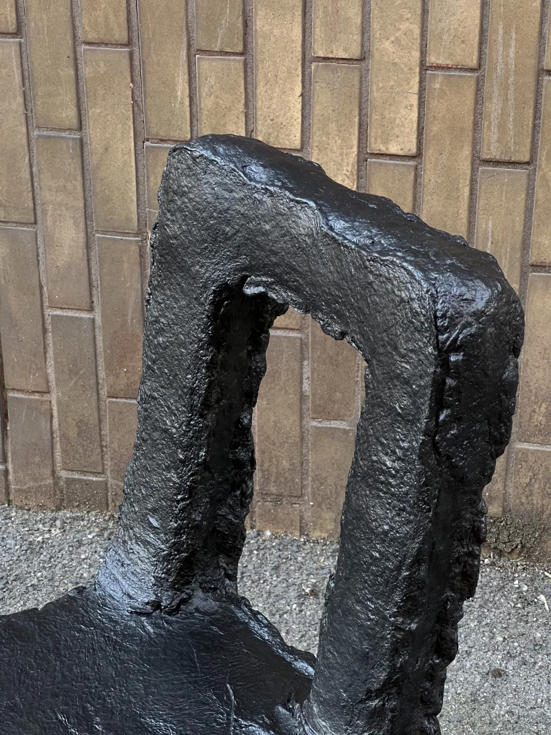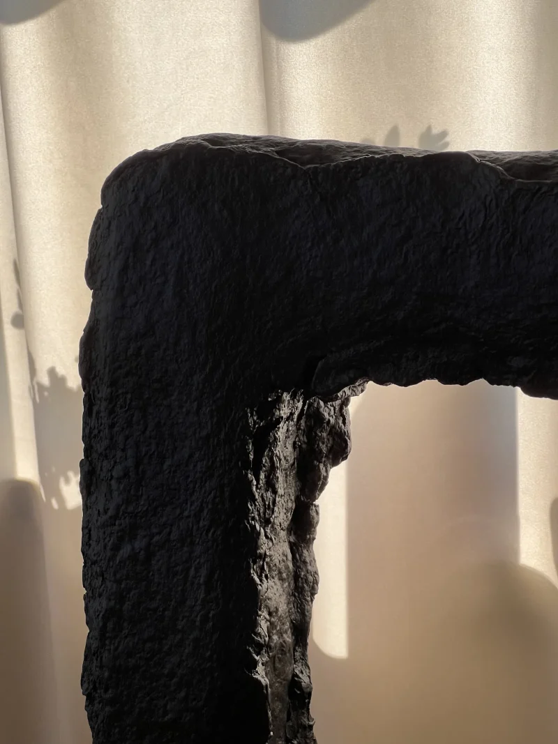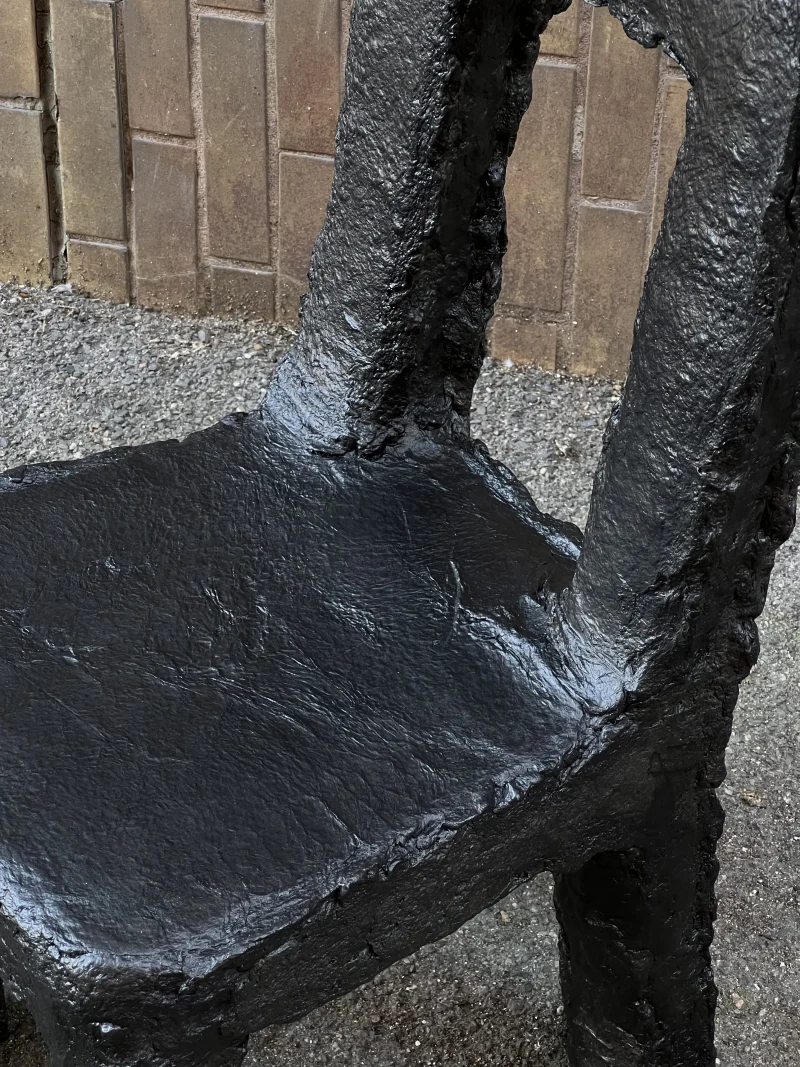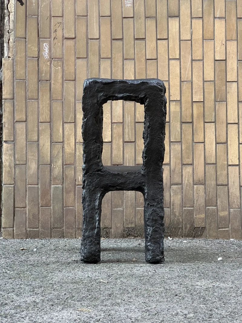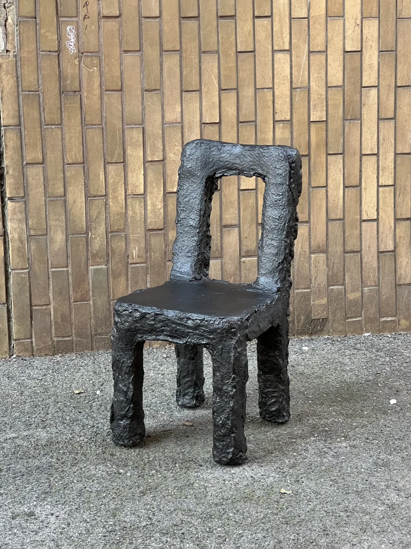 Upcycled, black, fully functional, handmade chair by David Čáp, with a square shape made of shredded paper. Despite the unconventional material, it has sufficient load capacity (100 kg) and is easy to wash.