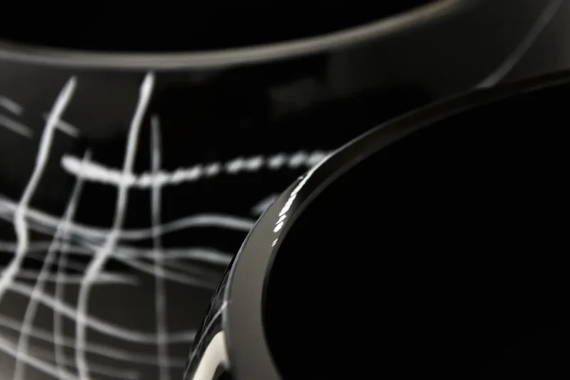 Black Hole by MILA ZILA challenges traditional notions of ornamentation, exploring the intersection between conscious design and the unintentional beauty of imperfection. While ornaments are often deliberately crafted to enhance or disguise, the decorative element here emerges organically through random, subconscious movements on a grinding wheel. This process leaves behind a raw, scratched abrasion that is as much a story as it is an aesthetic.