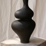 The Black Lilith sculptural vessel is a radically minimalist piece, entirely handcrafted using coiling and sculpting techniques to achieve asymmetrical and generous curves.