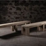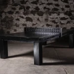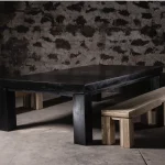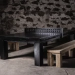 Convertible solid teak dining and ping pong table and 2 Natural Teak Benches