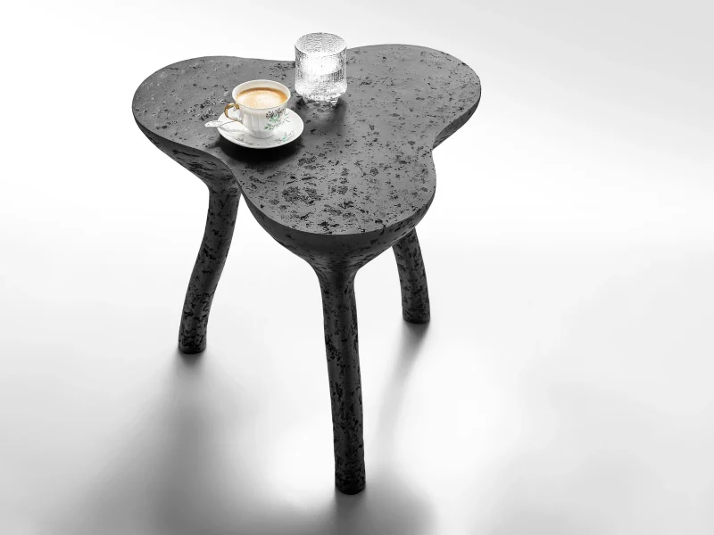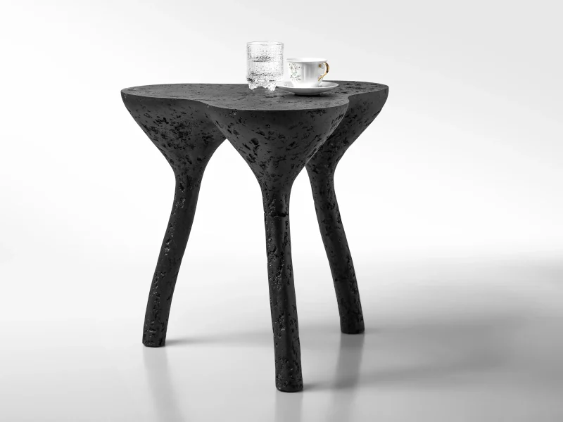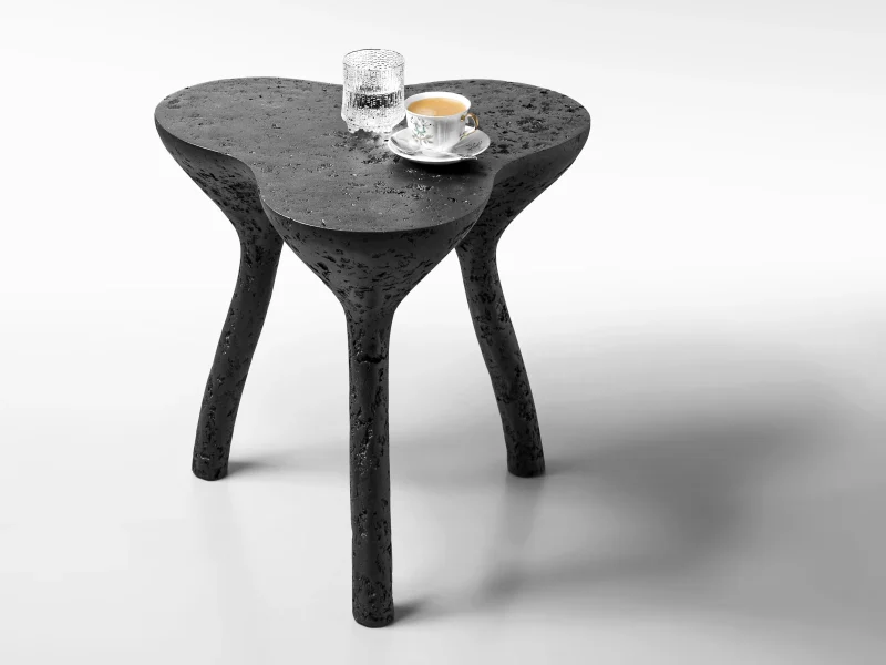 The material’s slight elasticity sets it apart, offering resilience and durability. Unlike rigid materials, it flexes under pressure, avoiding issues like splitting or crumbling. This distinctive composition ensures a lasting aesthetic appeal, with the tables maintaining their original color and texture over time. A perfect blend of form, function, and innovation, these tables redefine the boundaries of traditional materials in contemporary design.