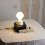 Crafted with distinctive artistry, this table lamp is a fusion of a repurposed beam wood, block of pristine limestone and a white ceramic cone light socket. The wood’s transformation is accentuated through the Yakisugi technique, with its refined finish achieved using only natural oils and beeswax. To ensure the protection of your furniture, the lamp’s foundation is subtly lined with a protective cork layer.