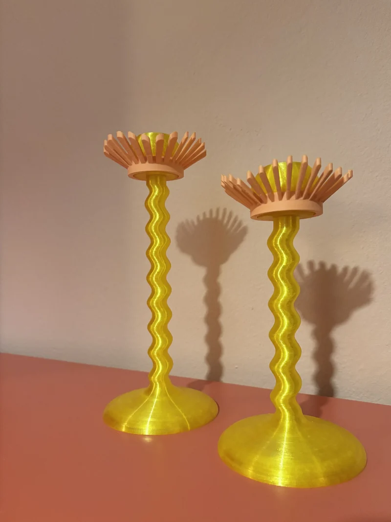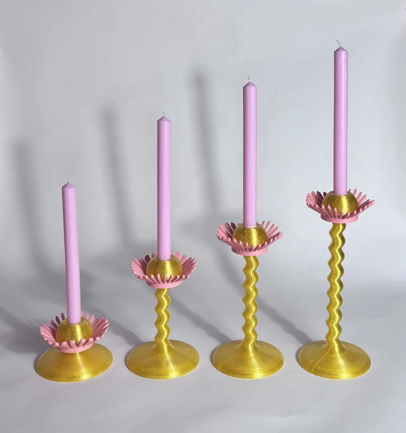 Each piece is meticulously 3D-printed using eco-friendly PLA filament with a silk-like finish, adding a touch of refined shimmer and sophistication. The innovative design and sustainable materials make these candle holders a perfect blend of artistry and contemporary technology.