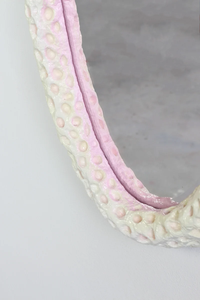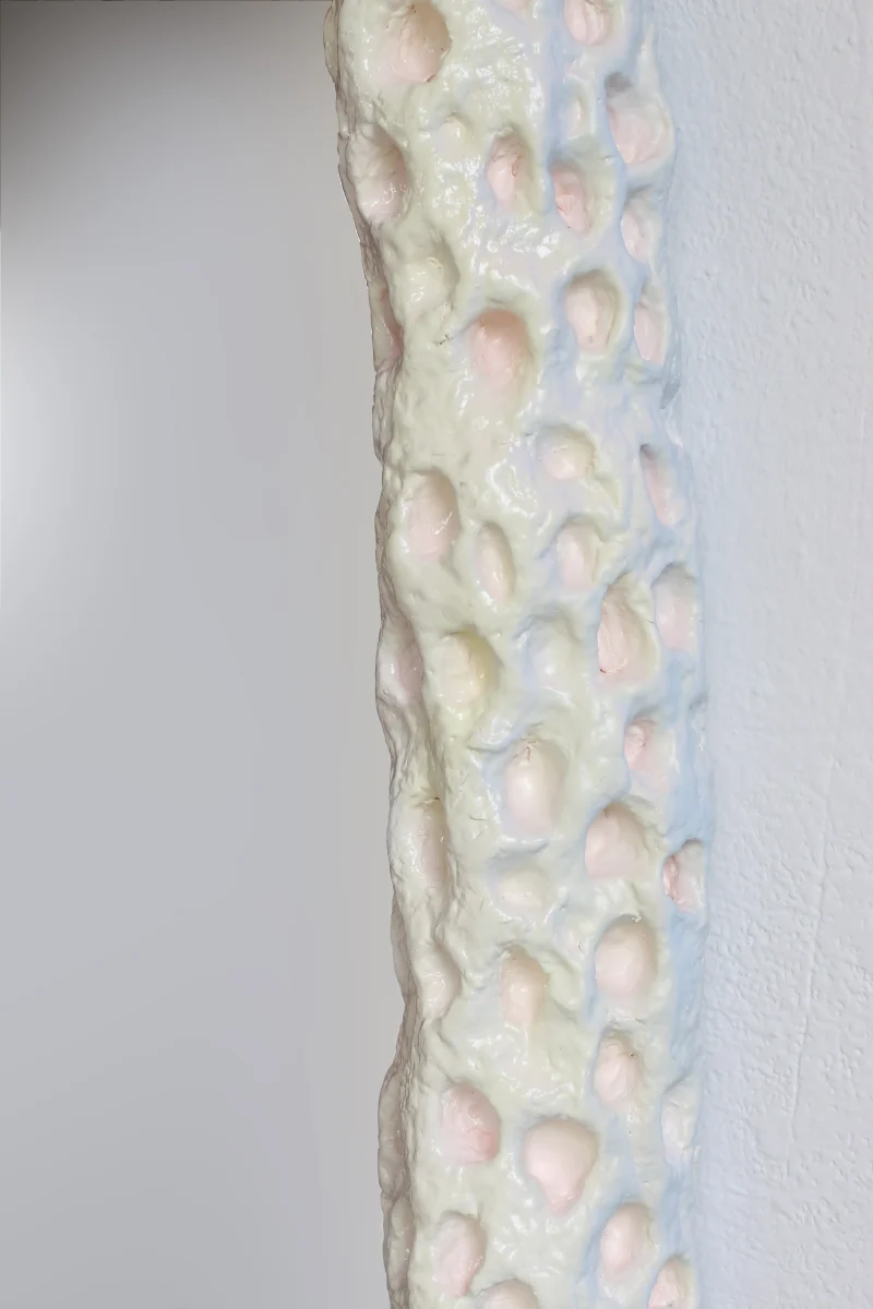 Embracing radical, maximalist design, Czech Republic-based designer David Čáp introduces a sustainable, textured, whimsical wall mirror in pastel shades of blue, yellow and pink.