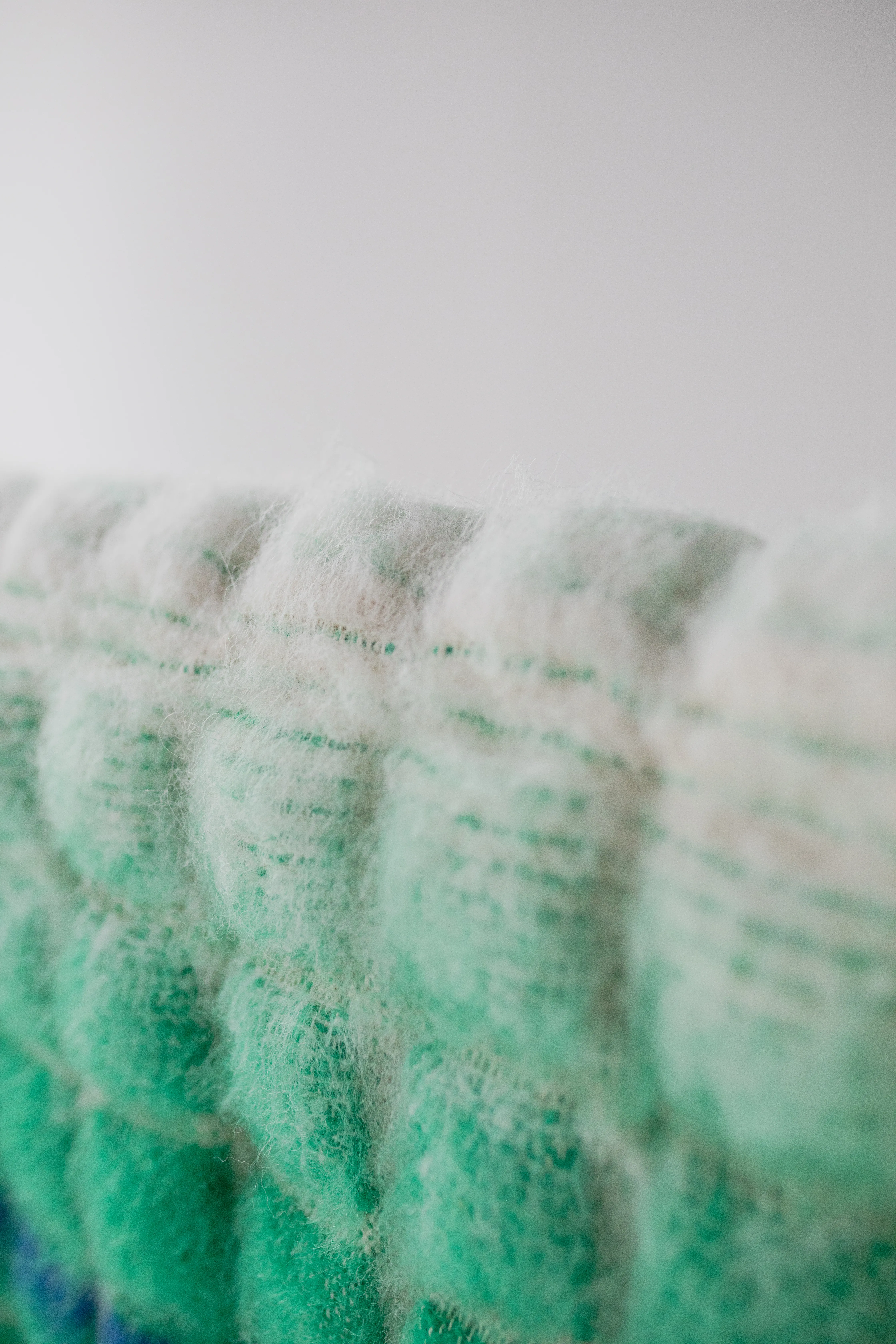 The BLUR series, an exquisite range of handwoven blankets by Rest Studio, showcases the unique beauty of combining mohair and alpaca fibers. These fibers, when expertly combed, create a mesmerizing effect with fluid transitions of color, adding depth and vibrancy to each blanket.