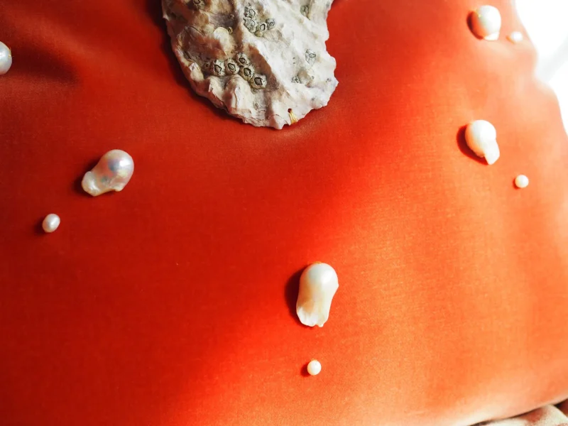 In my designs, I use seashells to give the texture of roughness and hardness representing the outside, in contrast to the smooth and sweet texture of velvet representing the inside of the shell. The freshwater pearls, made up of layers of mother-of-pearl, are what give the perfect softness so that the meat can be in contact with the hardness of the oyster in a pleasant way. All these elements make up the Bon Appetit collection, hedonism on planet Earth.
