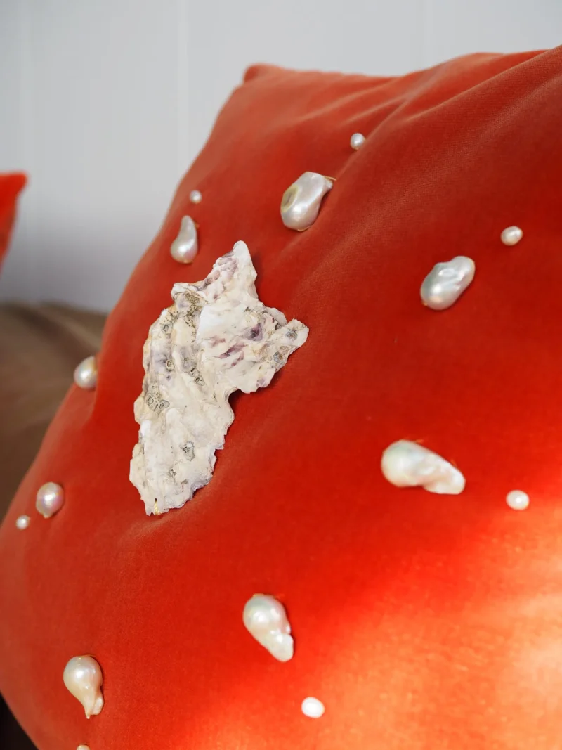 Unique embroidered cushion with natural pearls and shells: 1 of 1.
