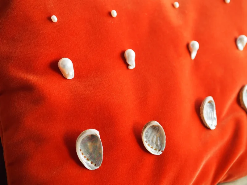 In my designs, I use seashells to give the texture of roughness and hardness representing the outside, in contrast to the smooth and sweet texture of velvet representing the inside of the shell. The freshwater pearls, made up of layers of mother-of-pearl, are what give the perfect softness so that the meat can be in contact with the hardness of the oyster in a pleasant way. All these elements make up the Bon Appetit collection, hedonism on planet Earth.
