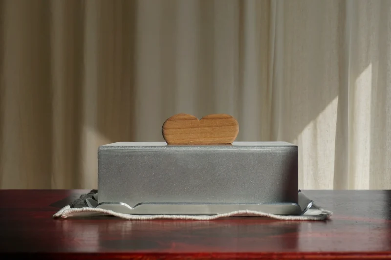 Boni Butter Dish by Basia Pruszyńska draws inspiration from the embroidered napkins my great-grandmother would place on the dining table—delicate textiles that quietly shaped the atmosphere of every meal.