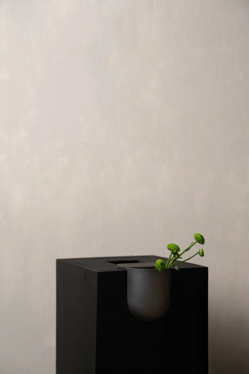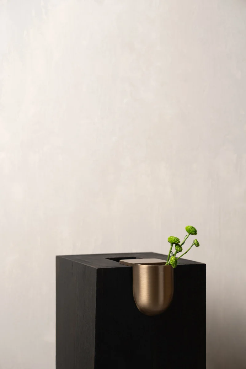 architectural detail Architectural vase bookcase vase Contemporary object corner display corner vase Decor flower holder Flower vase Functional sculpture graphic form gravity design Home decor industrial minimal L shaped vase Metal metal vase Minimalist vase modern decor no fixings quiet design Sculptural vase shelf edge shelf vase space saving Stainless steel Stainless steel vase steel object subtle display