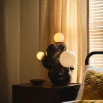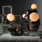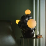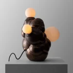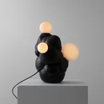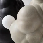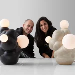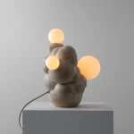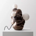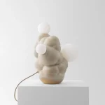 The “Botryoidal Lamp” by Forma Rosa Studio is a bubbly lamp, named after a natural mineral texture composed of many rounded segments. The formations of its shell have been digitally grown through coding and then materialized in an experimental process of handcrafted ceramic and glaze work. Featuring custom crystal glazes that perform in unique ways during their firing process, the bubbly-like form is accentuated as folds capture deeper crystal hues or textures, and convexities show smoother moments of color.