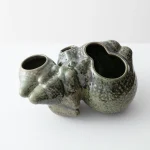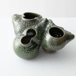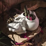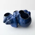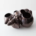 The “Botryoidal Planter” by Forma Rosa Studio is a symbiotic planter inspired by cacti and for cacti, that welcomes multiple plants in a pot. This piece is named after a natural mineral texture composed of many rounded segments. The formations of its shell have been digitally grown through coding and then materialized in an experimental process of handcrafted ceramic and glaze work. Featuring custom glazes that perform in unique ways during their firing process, the bubbly-like form is accentuated as folds capture deeper crystal hues or textures, and convexities show smoother moments of color.
