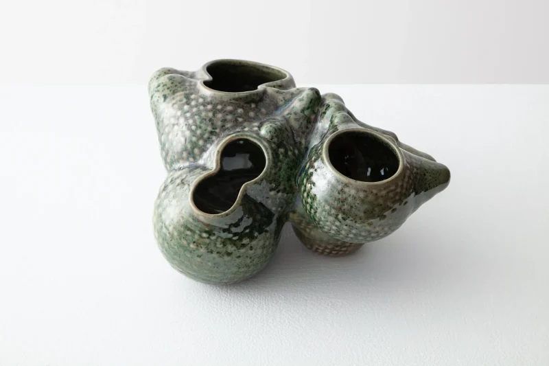 The form of our “Botryoidal Collection”; as the name suggests, is not just influenced by the natural growth of crystal where bubbles are shaped in a fractal-like pattern to create its volume, but also its crystallization on its glaze coloring and effects as part of its maturation through its firing process. This piece conveys both; in its form and its finish, its Botryoidal unique influence and representation. Forma Rosa Studio’s practice not only pushes the limits of their design studio in Brooklyn but also the development, fabrication and research of their collaborating artisans in Peru.