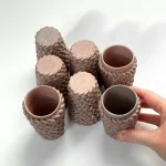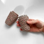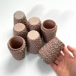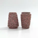 Espresso cup, by Bar Bergman made out of braided clay, coloured with purple and pink pigments. Shiny glaze finish, suitable for the dishwasher.