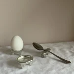 This set includes one small cutlery stand to elegantly hold your spoon, and two small bowls which can be used for your eggs and a sprinkle of salt.