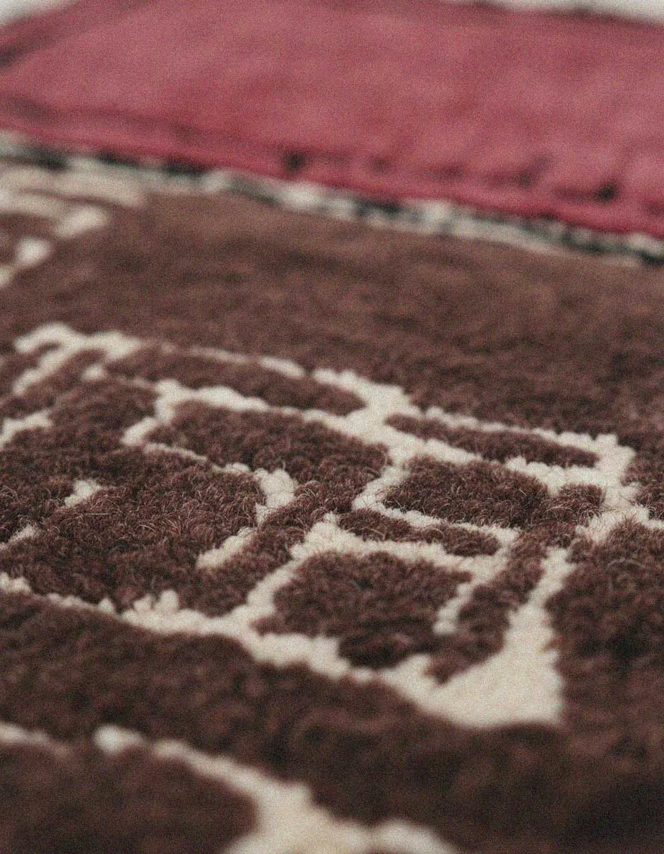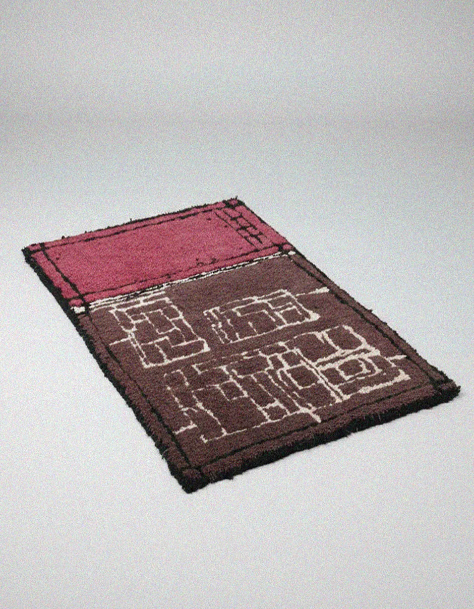 architectural rug argentine wool artisan rug black accent brick pattern brick texture brown cream buenos aires collectible rug Contemporary textile design rug earthy palette Earthy Tones graphic contrast handmade rug handmade wool rug linen backing Merino wool merino wool rug modern graphic modern interior Organic Design rust tones Sculptural rug statement rug structural lines Textile Design Textured Surface Tufted rug warm palette WARM TONES