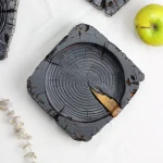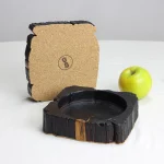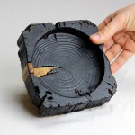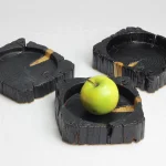 Elegantly crafted, these wooden trays—ideal for jewelry or as desk organizers—are fashioned from timeworn barn beam wood. They undergo the traditional Japanese Yakisugi burning technique and are meticulously treated with natural oils, then safeguarded with a layer of beeswax. A discreet cork lining graces their base, ensuring your furniture remains unscathed. Any pronounced fissures are seamlessly mended using unburned wood fragments from the same venerable beam.