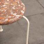 The project seeks to experiment with new ways of reusing solid waste that would otherwise be discarded, giving this raw material a leading role in new constructions. The waste used includes leftover ceramics, porcelain, tiles and mortar, all crushed into appropriate sizes. The simple, uncomplicated shapes of the pieces allow the dynamic pattern of demolition materials to show through in an authentic way. This design is honest with its materiality and reveals its natural composition with grace, evoking the brutalist movement by highlighting the use of exposed raw materials and the display of structural elements rather than adornment.