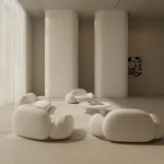 The BRUTO sofa by Joana Teixeira is designed to challenge conventional aesthetics, aiming to disrupt the visual monotony of rigid structures by reflecting the fluidity and grace of natural, minimalist curves. With its sinuous lines and asymmetric silhouette, it stands as a testament to the beauty found in imperfection.