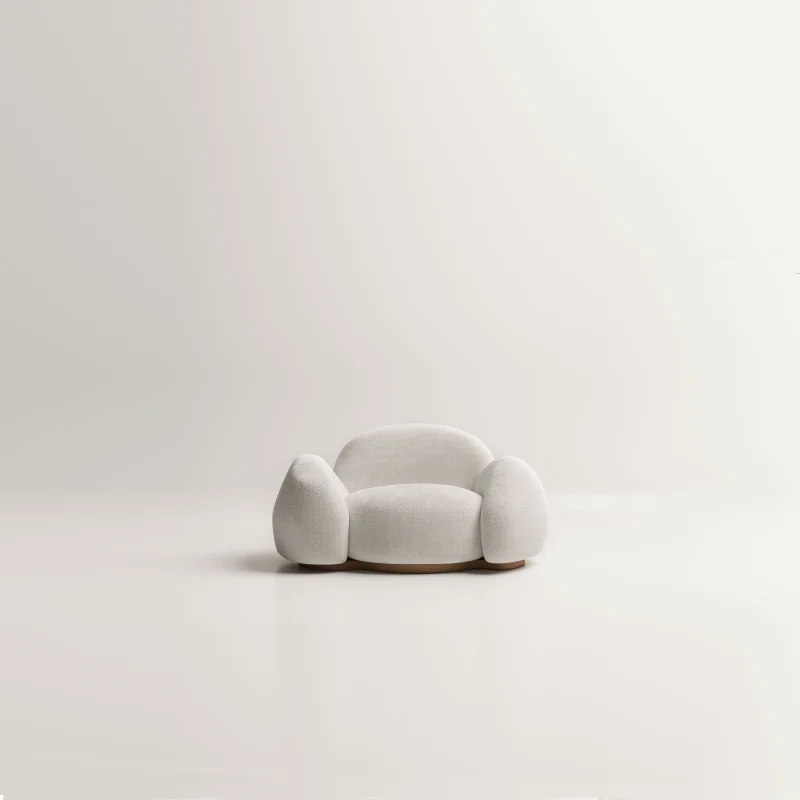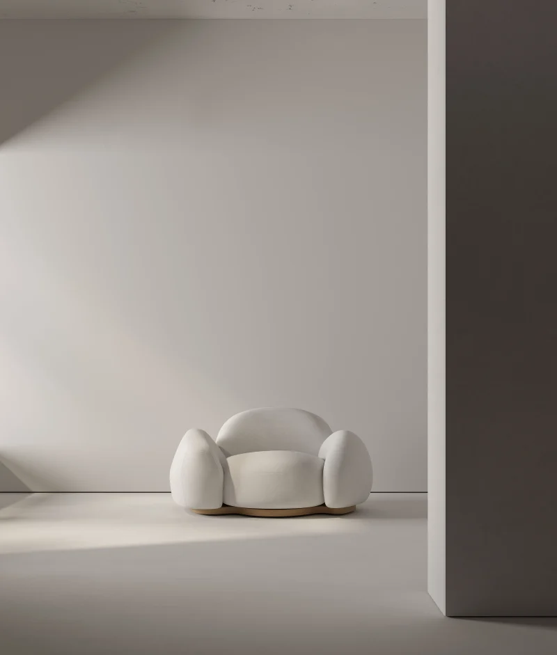 The BRUTO sofa by Joana Teixeira is designed to challenge conventional aesthetics, aiming to disrupt the visual monotony of rigid structures by reflecting the fluidity and grace of natural, minimalist curves. With its sinuous lines and asymmetric silhouette, it stands as a testament to the beauty found in imperfection.