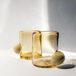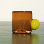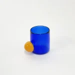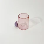 Bubble Cup tumblers are one of our original Sticky Designs. Each cup roughly measures 3.5” x 2.75” x 3” and is hand blown in our studio in Brooklyn. Hand wash only and avoid hot liquids.