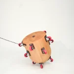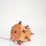 Budge is a conceptual seating object, designed as part of Nush’s MFA thesis collection. Drawing from the objects and spaces of street vendors in India, the object plays around with the ideas of mobility and staticity. The massive red oak volume, is made mobile by covering it’s sides with fixed casters. In the upright position, five wheels make contact with the ground and work against each other, effectively rendering the volume immovable. The Lacewood handle can be pulled and once tipped over, the stool can be pulled around and made mobile. The idea of being on five wheels and still being extremely stable is the idea on which the object is made.