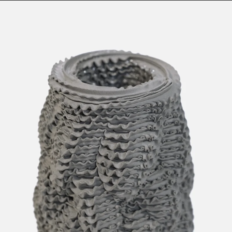We are exploring new aesthetics by merging state-of-the-art technology, design and craft. This original design is 3d printed in 100% natural clay and finished by hand.
