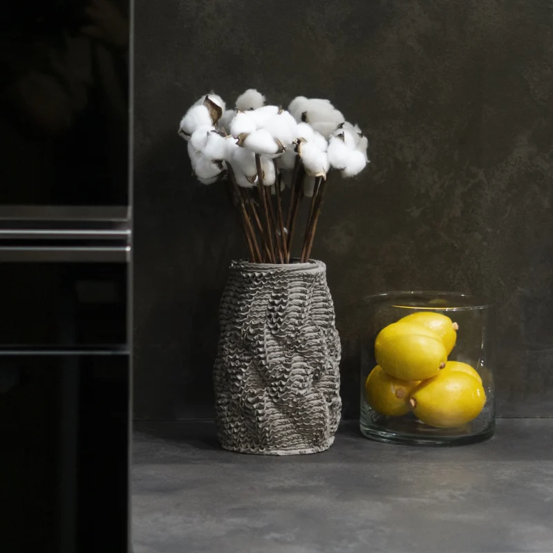 A flower bud is an immature flower usually covered in protective scales which shelter it while it develops. As the flower matures, the bud opens, allowing the flower to emerge. The function and aesthetic of flower buds served as inspiration for the organic texture of this collectible vase.