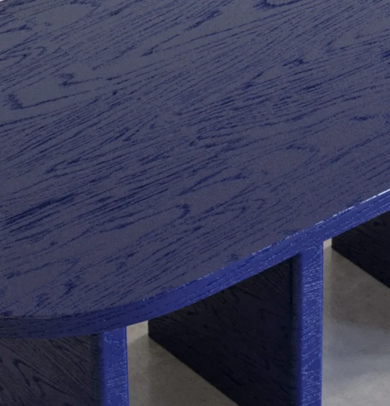 The symmetrically arranged legs reinforce the brutalist identity of the Bug table by hermhaus. It exhibits a timeless and contemporary look with its unique colour and coating.