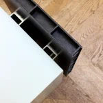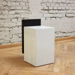 The back panel is made of Finsa Greenpanel black MDF. It’s connected to the base with aluminium profiles and brass nuts and bolts. The colour of the base is a very light mint green, which may appear different on your screen.