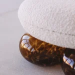 The Bulbo Stool is a masterful blend of minimalistic style-lines and surreal balance, bridging the gap between the bold and the delicate to create an artistic, joyful item that invites curiosity and interaction. Produced in the studio’s atelier, it involves skilled local artisans, showcasing their craftsmanship. The stool is made from Spanish blown glass, shaped by hand.
