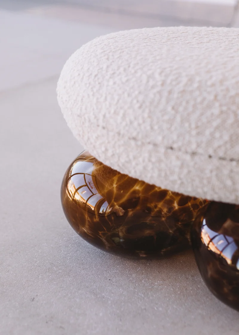 The Bulbo Stool is a masterful blend of minimalistic style-lines and surreal balance, bridging the gap between the bold and the delicate to create an artistic, joyful item that invites curiosity and interaction. Produced in the studio’s atelier, it involves skilled local artisans, showcasing their craftsmanship. The stool is made from Spanish blown glass, shaped by hand.