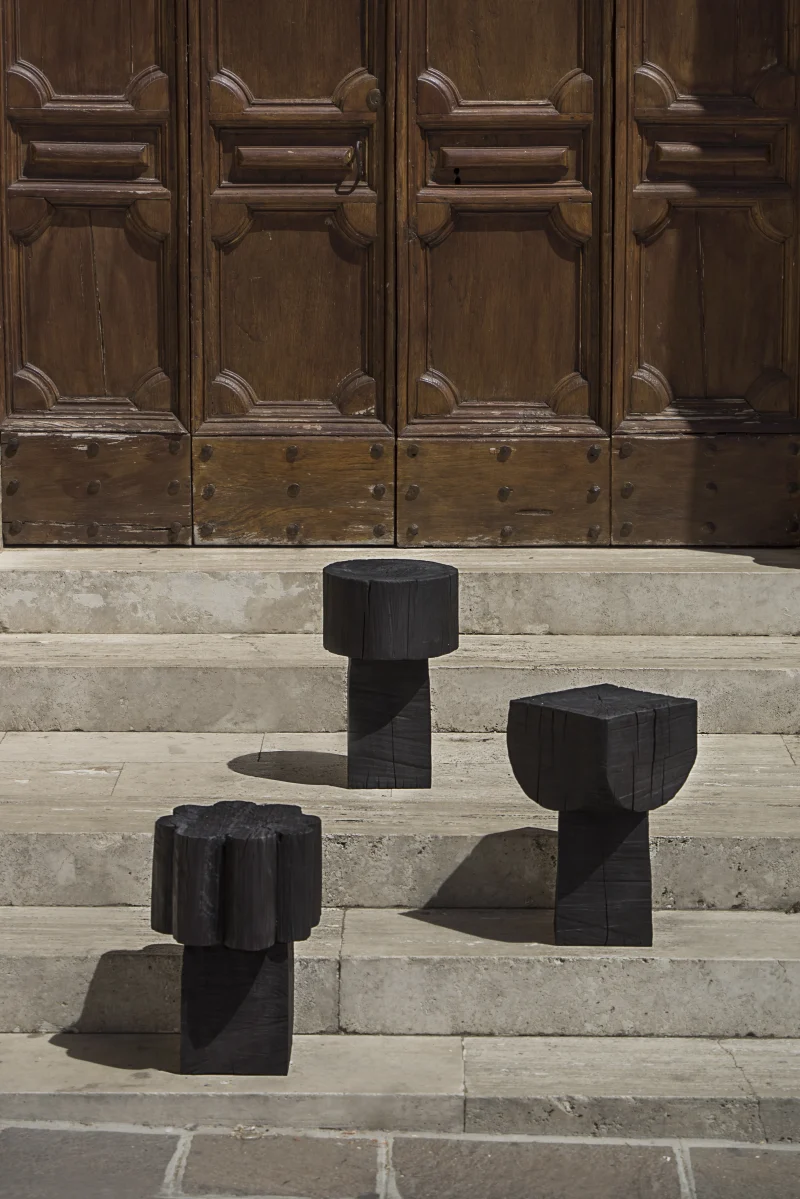 Moving around Europe in the car in which they set up their workshop, the guys were able to work "on the fly" in fields and on beaches, in parking lots and in the mountains. The surrounding world with its nature and traces of human life, which are invariably found even in the most desolate corners of Europe, became the main source of inspiration and the basis for work. That is how the idea of taking materials for their projects from the environment sprang up: trees and stumps discarded by the sea, shells on beaches and buoys from fishing nets.