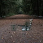 “c.1[g]” a glass lounge chair with no visible connections, which comes along a glass side table. The glass chair exemplifies a fascination with immateriality and transparency. Formed solely from planes of clear glass, the chair’s solid state seems to dissolve. Almost invisible, these planes, without tangible support, hang in the air.