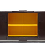 This semi-open cabinet dresser by Studio Fabius Clovis is a striking fusion of sustainability and artistry, crafted from discarded wooden offcuts and finished with high-gloss lacquer. Its design celebrates the interplay of figuration and abstraction, embodying the studio’s commitment to restraint and meticulous craftsmanship as core ethical principles.