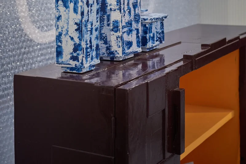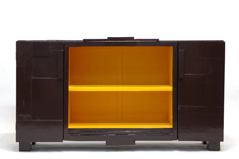 This semi-open cabinet dresser by Studio Fabius Clovis is a striking fusion of sustainability and artistry, crafted from discarded wooden offcuts and finished with high-gloss lacquer. Its design celebrates the interplay of figuration and abstraction, embodying the studio’s commitment to restraint and meticulous craftsmanship as core ethical principles.