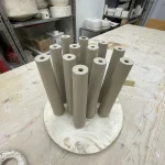 Because of its modular nature, Cadere can be configured in different sizes – with 6, 25, or 35 porcelain cones – adapting its presence from an intimate light object to a grand, atmospheric centerpiece.