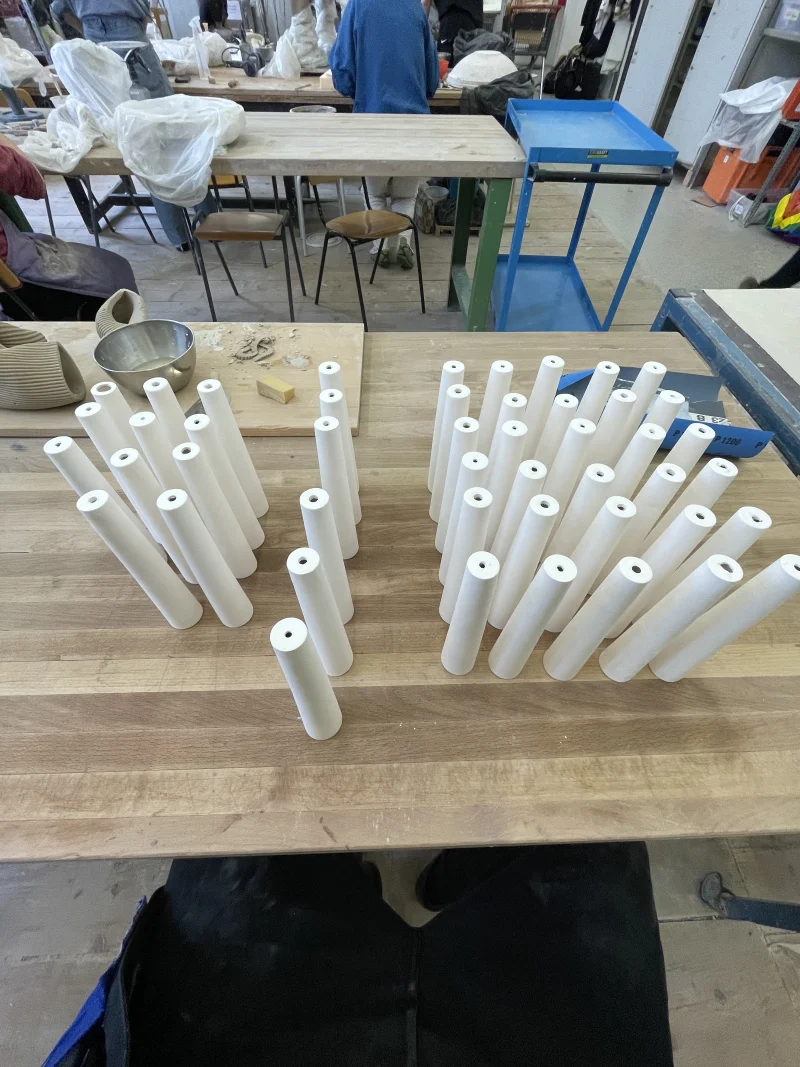 Because of its modular nature, Cadere can be configured in different sizes – with 6, 25, or 35 porcelain cones – adapting its presence from an intimate light object to a grand, atmospheric centerpiece.