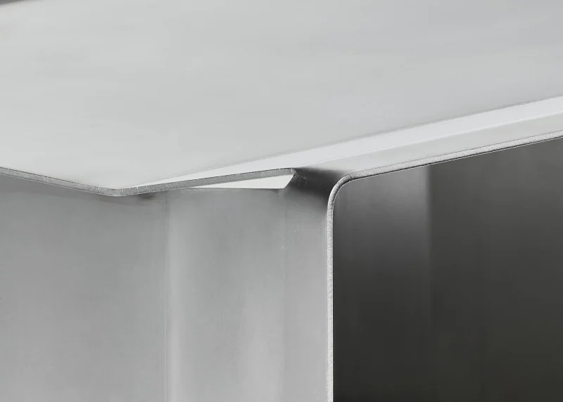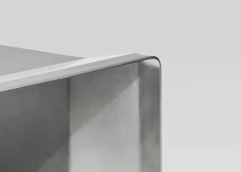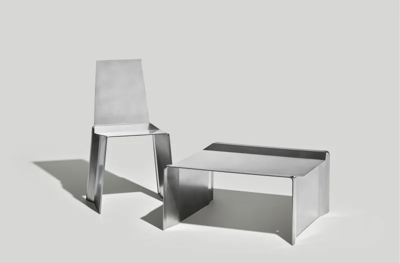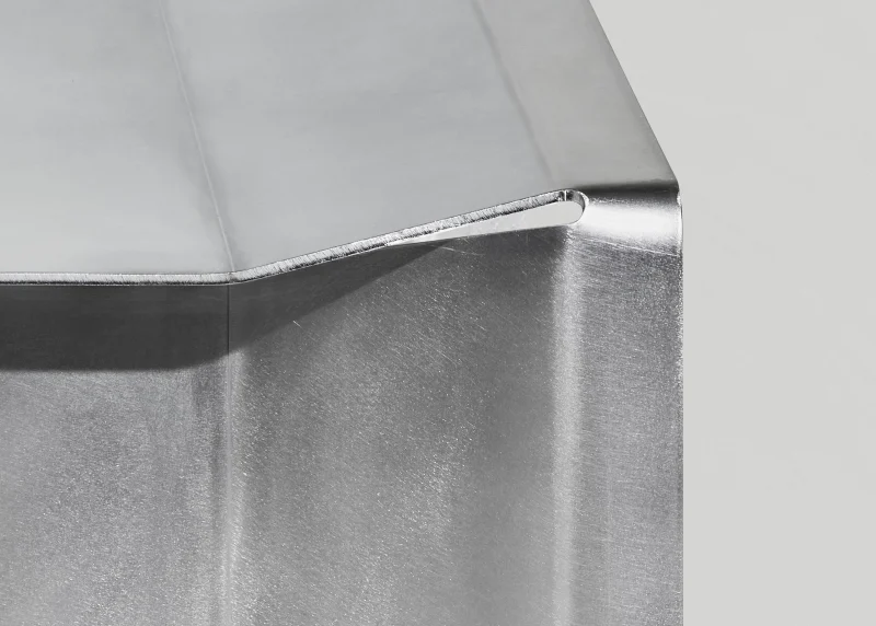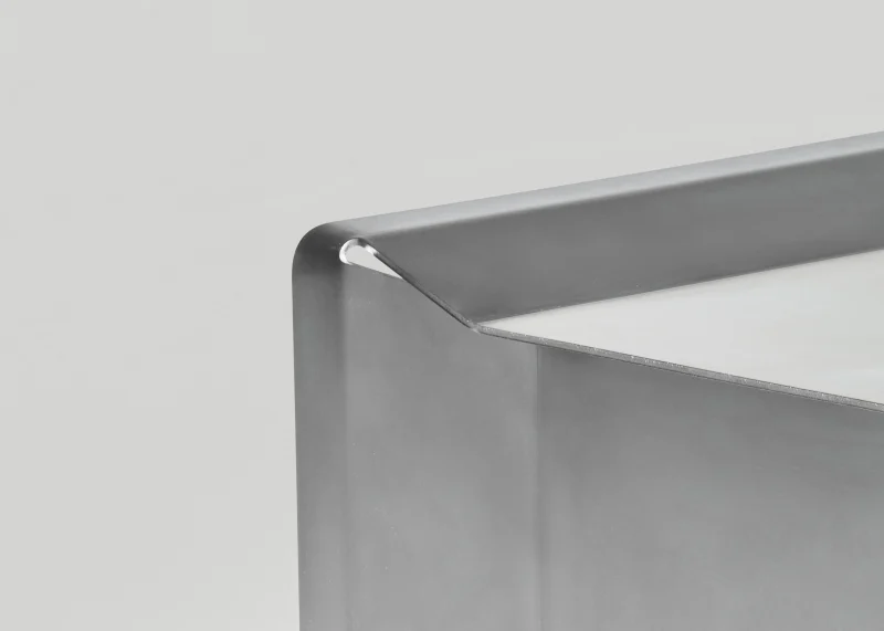The Camber collection by Paul Coenen originated from the idea of manufacturing a piece of furniture from a single piece of stainless steel sheet metal.
