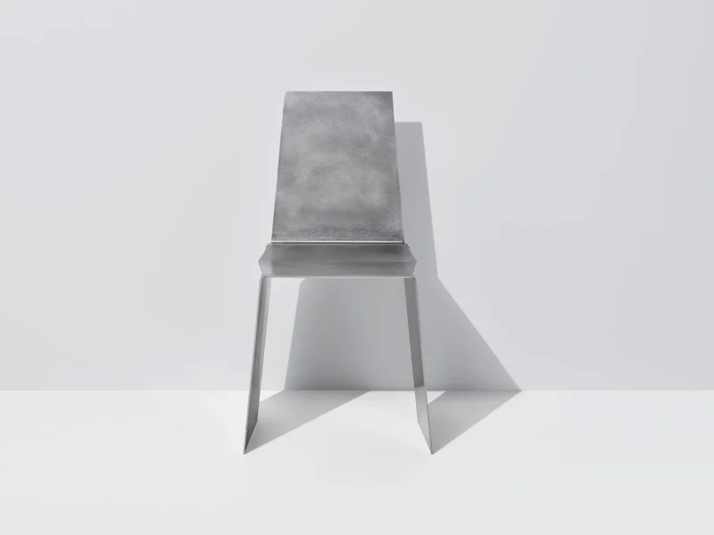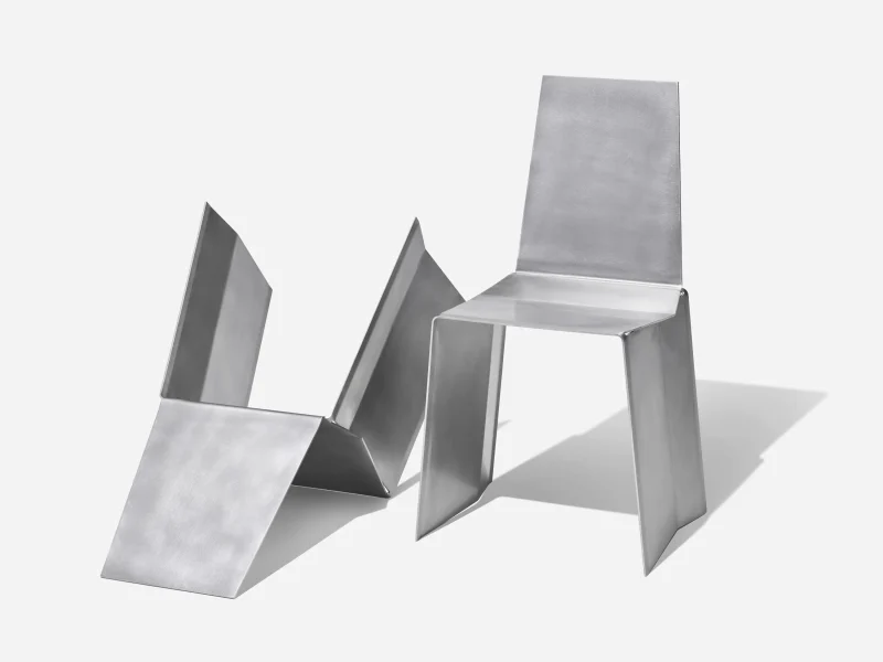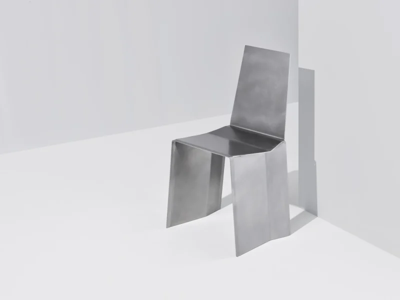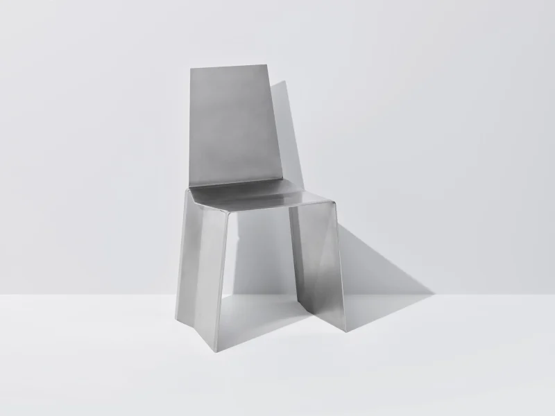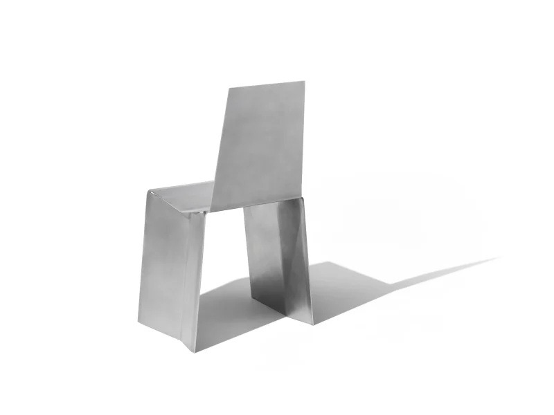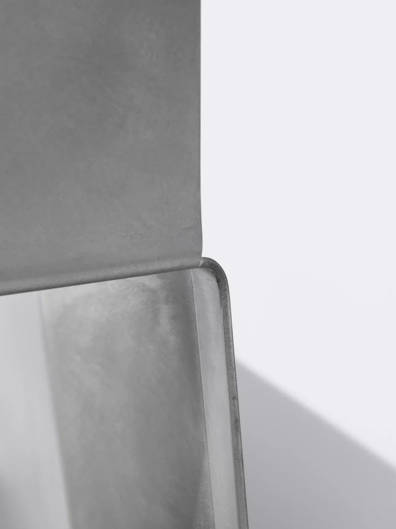 The Camber chair originated from the idea of manufacturing a piece of furniture from a single piece of sheet metal.