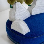 Crafted using different fabrics, the Canapé des Calanques is like having a three-dimensional postcard right in your own home. The plush green mohair from Pierre Frey mimics the windswept Aleppo pine trees, while the strata-riffic weave from Metaphores captures the rugged limestone rock formations.
