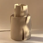 Inspired by the canyon of Petra Katia Langeard wanted to create a lamp that doesn’t cast any direct light but still sufficiently illuminates the table.The interplay of gaps allow no direct light to escape what makes the light from this lamp comfortable. Perfect for refined interior space. Each lamp is individually crafted, ensuring no two are alike.