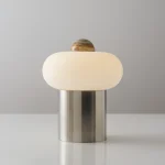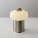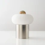 Capsula is a sculptural table lamp handcrafted in New York City by Noiro Studio. Merging material integrity with poetic form, it features a brushed stainless steel base, a mouth-blown glass shade, and a precision-cut onyx top. Drawing inspiration from the fluidity of space and the organic forms found in nature, Capsula offers a contemplative interplay between structure and light.